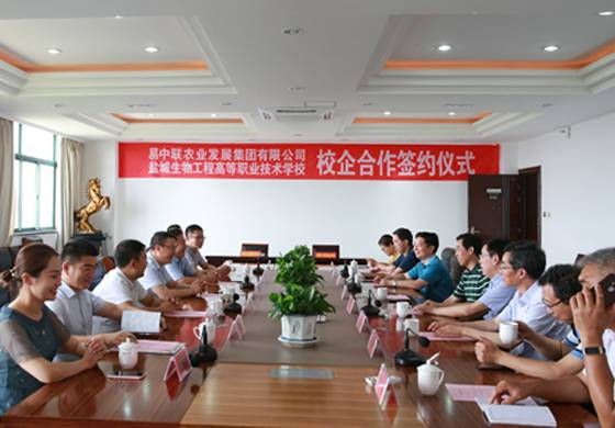 2019年7月9日,为进一步深化与促进产教融合、校企合作,易中联农业集团相关领导赴江苏省盐城市,在建湖县委,县政府见证下,与盐城生物工程高等职业学校签订校企合作协议,政、校、企三方深度合作。易中联集团将以培养农业人才为基础,以标准化农业示范园区为依托,以优势特色农业为导向,建设产教一体的中国农业标准化服务体,最终形成集农业现代化人才、科技、标准、安全和产销一体化智库科农联合体,为农业现代化和标准化做出积极贡献。